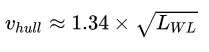 Hull speed or displacement speed is the speed at which the wavelength of a vessels bow wave is equal to the waterline length of the vessel.